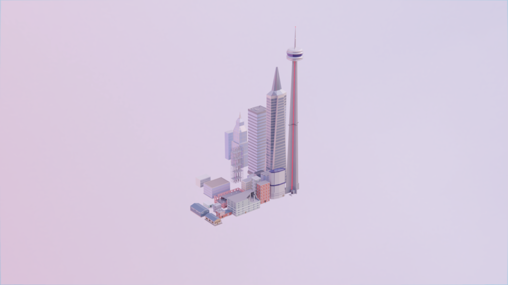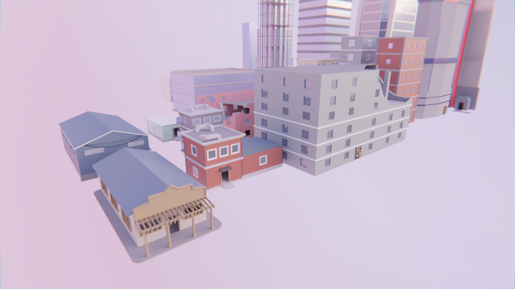 This includes an fbx file of 22 buildings, that is easy to use for any 3d modeling program or game engine.