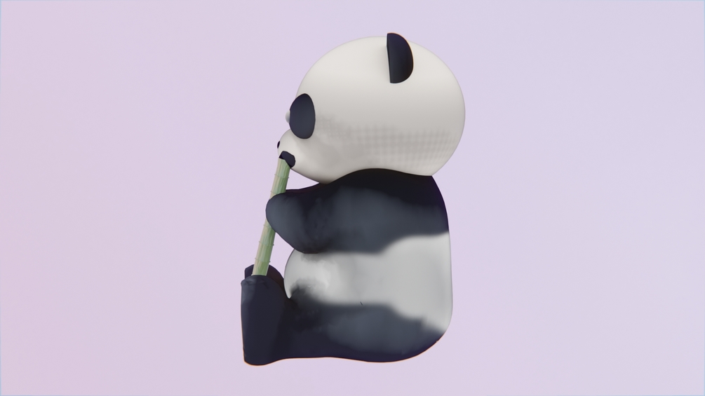 A toon panda sitting down and eating some bamboo, fairly low poly and print ready.