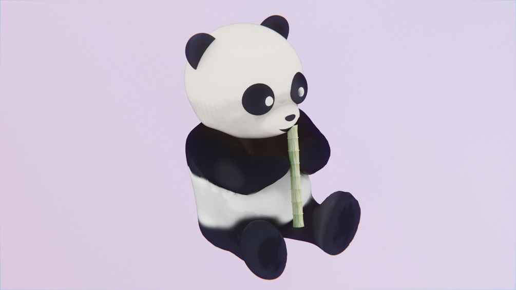 A toon panda sitting down and eating some bamboo, fairly low poly and print ready.